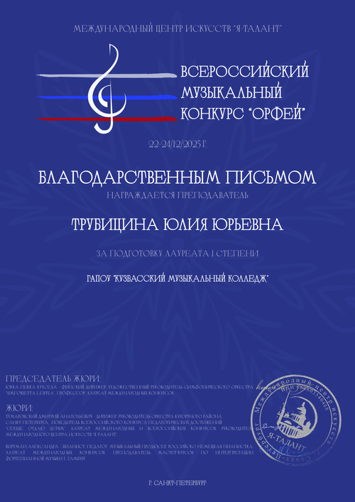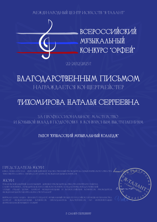 С 22 по 24 декабря 2025 года состоялся Всероссийский музыкальный конкурс «Орфей».