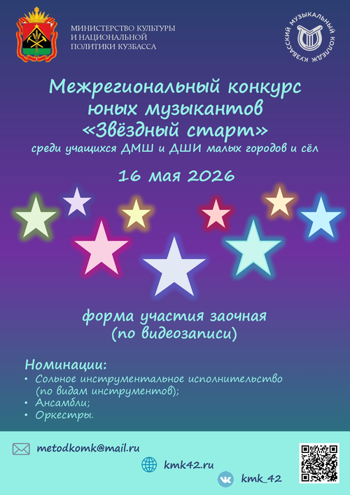 16 мая 2026 года состоится Межрегиональный конкурс юных музыкантов «Звёздный старт» среди учащихся ДМШ и ДШИ малых городов и сёл.